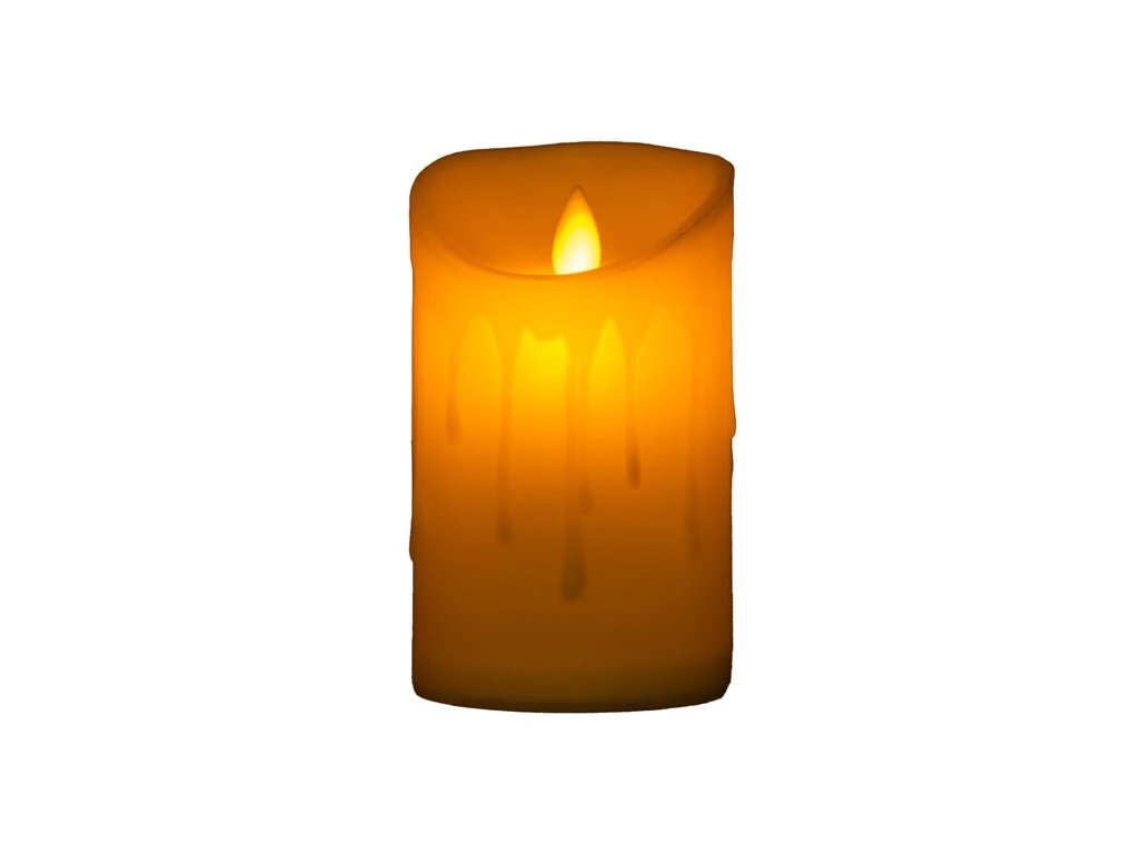 Modern, krémszínű LED gyertya valósághű táncoló lánggal, amely valódi tüzet szimulál.